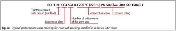Den siste utgaven av TA Luft-forskriften trådte i kraft den 23. juni 2021. En overgangsperiode for overholdelse av nye krav opphører 1. januar 2025. Den siste utgaven i TA Luft-forskriften viser til internasjonalt gjeldende ISO 15848-1 om ekvivalente pakningssystemer. Denne standarden beskriver måling, test og kvalifiseringsprosedyrer for «fugitive emissions» i industriventiler. Den beskriver spesifikke testprosedyrer og testmedier. Tetthet, temperatur og utholdenhetsklasser er også tildelt. Antall mekaniske sykluser (hele slag) er også klassifisert, noe som er en relevant faktor for pakninger. Målet med ISO 15848-1 er å klassifisere av ytelsen til ulike design og konstruksjoner av ventiler for å redusere lekkasje til omgivelsene. Testing kan kun utføres på ferdigmonterte ventiler. Heliumgass (H) eller metan (M) med minimum 97 % renhet er foreskrevet som testmedium. Etter testing er pakkingen tilordnet en ytelsesklasse (se fig. 6).